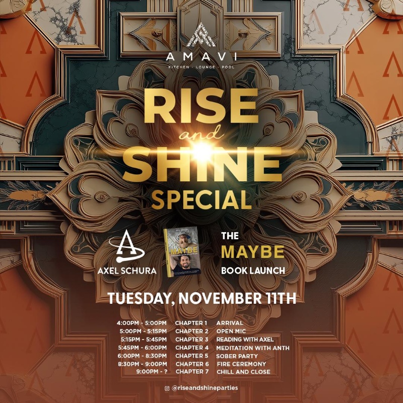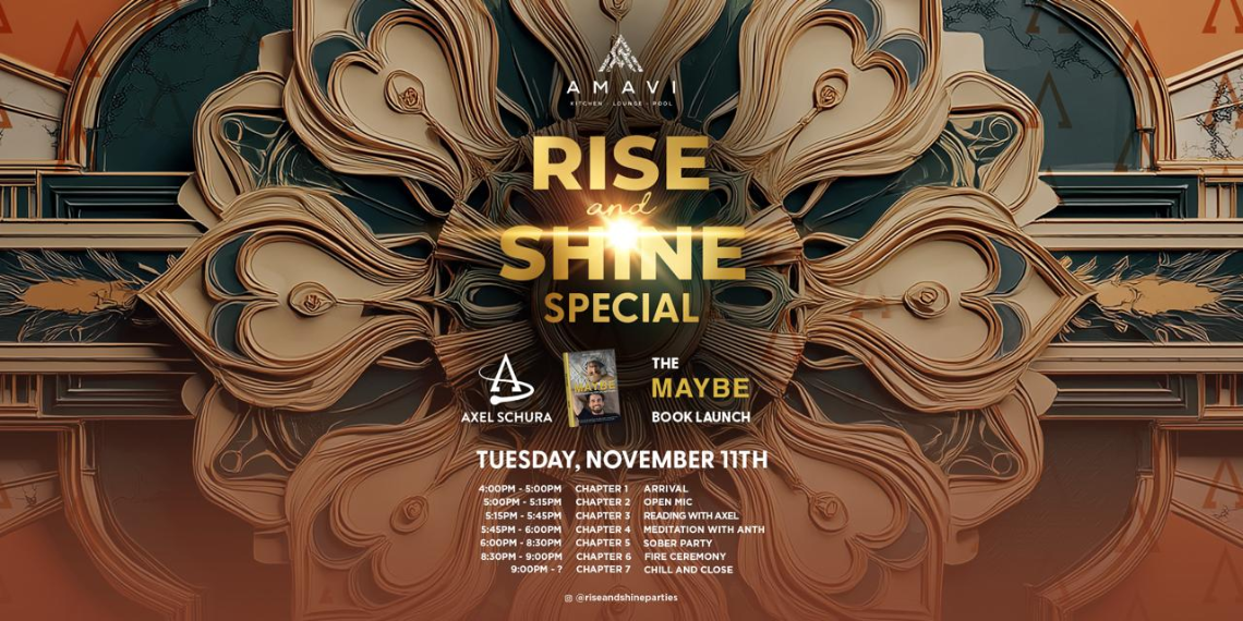We will also be welcoming Axel Shura to be reading a chapter of his new book MAYBE, where he was told by doctors what he only had a week left to live with his battle for cancer, that was several years ago now and the man is thriving, absolutley in alignment with RISE and SHINEE and the power we all have to make positive change in our life and the world.