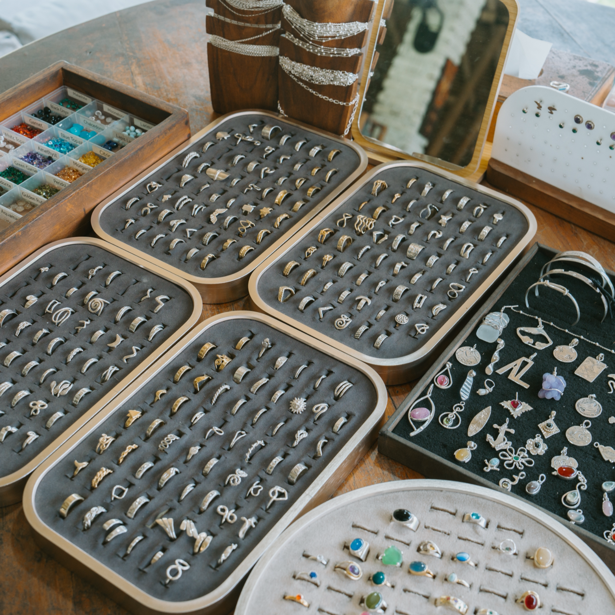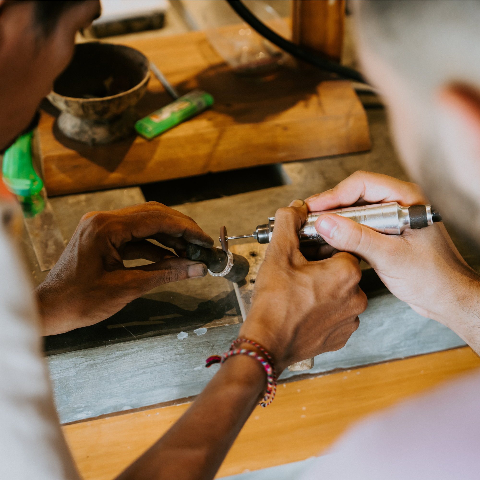 At the workshop, you can create rings, bracelets, or pendants using silver or gold, guided by local craftsmen. We also have a gemstone and crystal gallery with a wide selection of natural stones, including rubies, emeralds, sapphires, and many more, which you can choose to add to your piece.