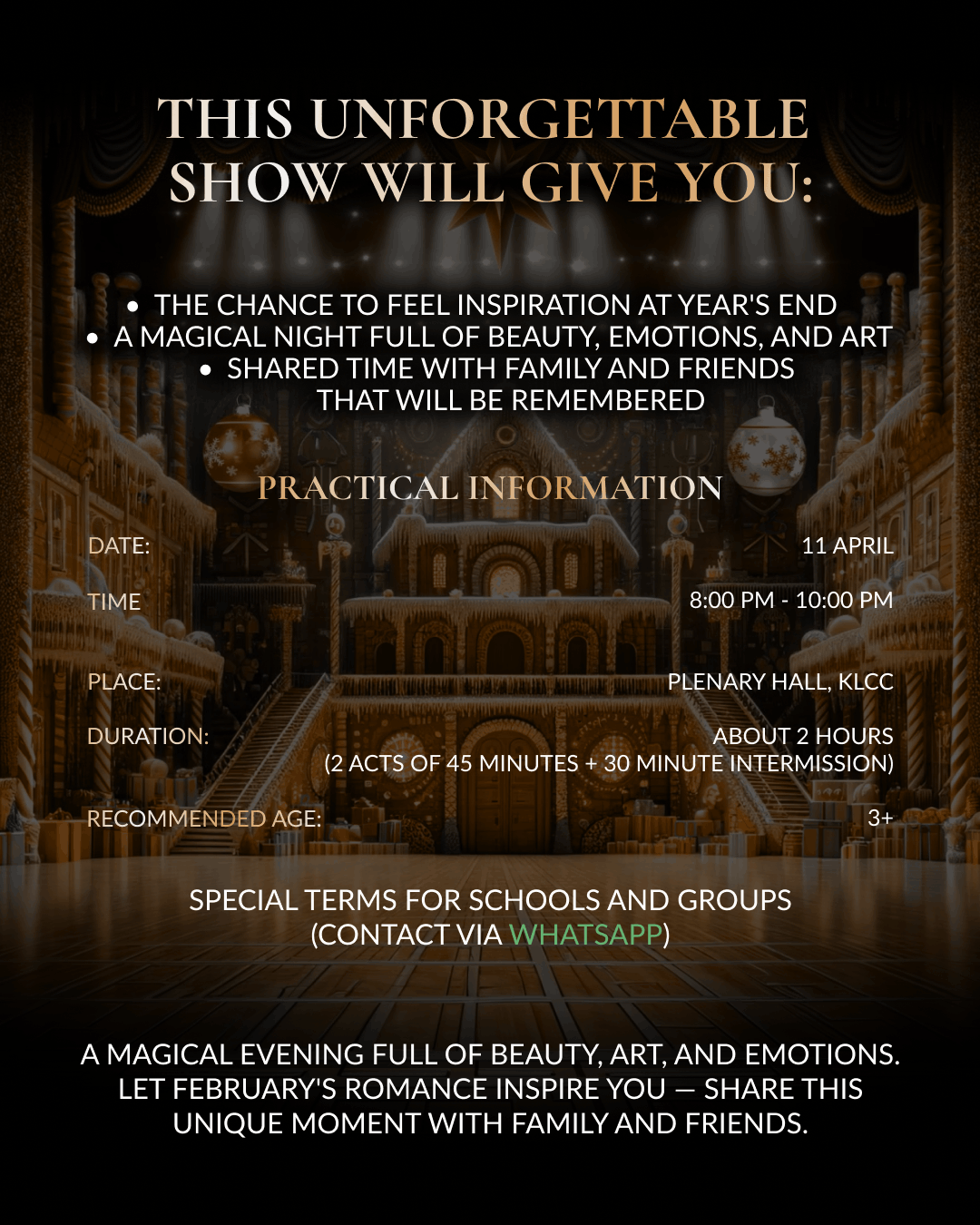 Book your tickets now — give yourself and your loved ones the magic of an unforgettable evening!