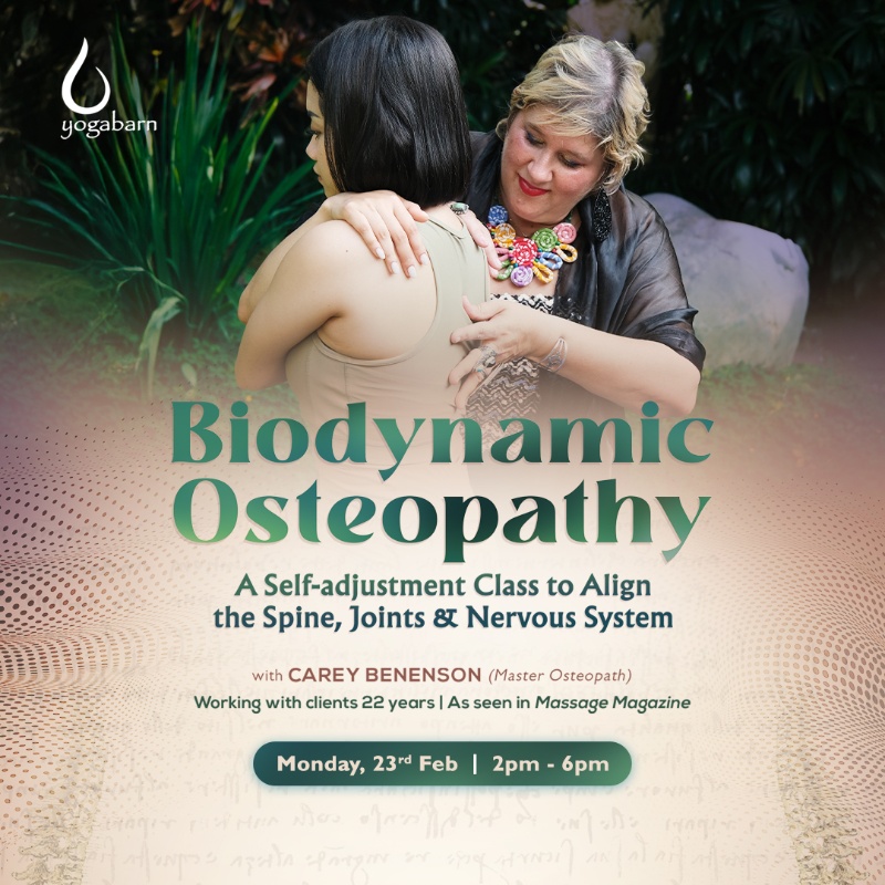 Where physical therapy meets exploration to unwind the “cell-f!” In this class, 22+ year experienced practitioner as seen in Massage Magazine, Carey Benenson, Master Osteopath, will guide the group to align the body from tooth to toe by guiding visceral lengthening techniques, fascial streaming movements & nervous system rewiring exercises inspired by traditional and modern Osteopathic principles as well as oceanic body movement to music. Participants will experience moments of self-correction of the posture/body, mind, and spirit while flossing their spines to hydrate the discs and the nervous system. Slow yet intense stretches and integrative movement will be to explored allowing participants to get taller, freer in their bodies, with lasting results!