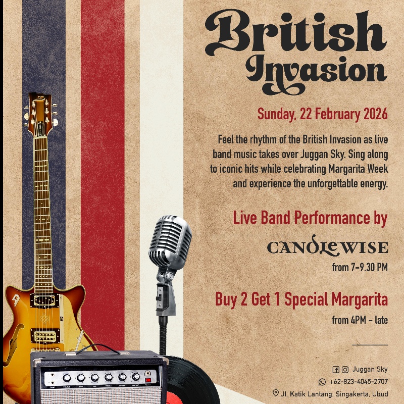 Get ready to relive the golden era of the 60s as the rhythm of the British Invasion takes over the night. Sing along to iconic hits, feel the nostalgia, and celebrate Margarita Week with electrifying live music.