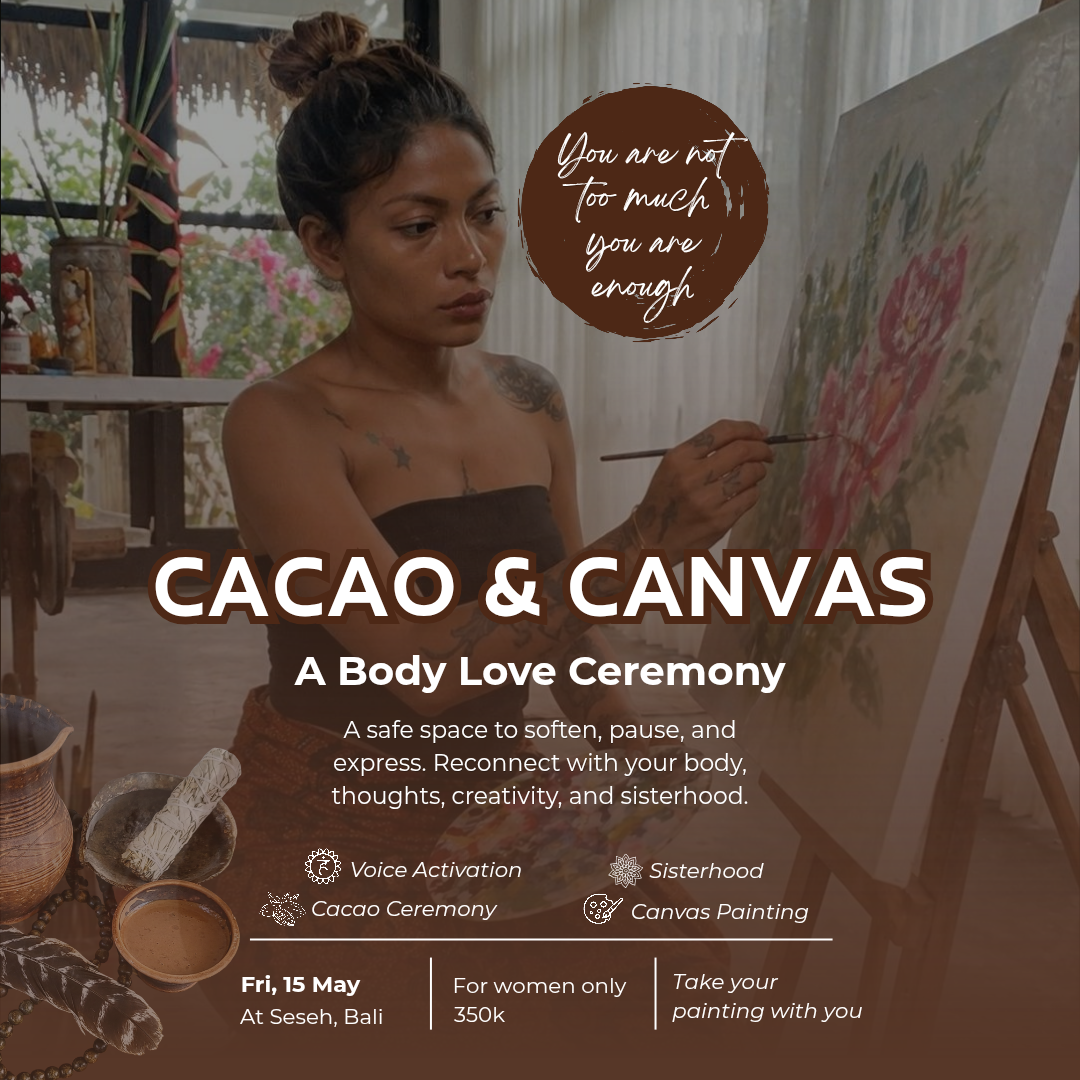 A 2-hour guided journey to slow down, soften, and reconnect with your body through cacao, sound, and creative expression.
