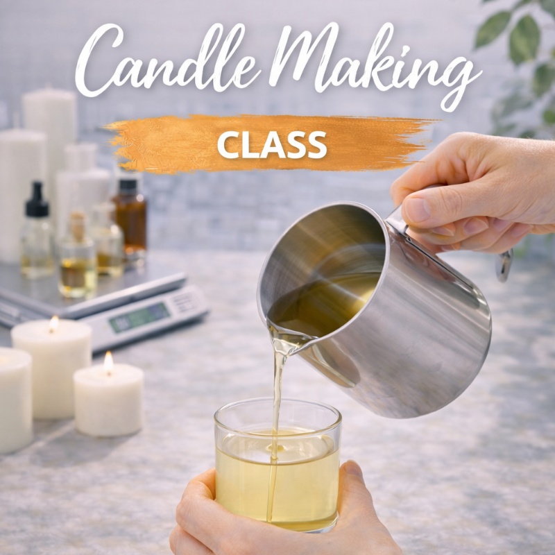 Learn the fundamentals of candle making by crafting your own scented candle while understanding wax selection, fragrance blending, and proper pouring techniques in a hands-on session.