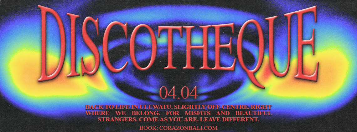 Club Corazon Discotheque is a vibrant, inclusive, Bali based club night and electronic music party series. Known for being a misfit within its surroundings, it showcases a diverse range of artists and sounds, including house, techno, disco, bass, breaks, and UKG, with a strong focus on community.
