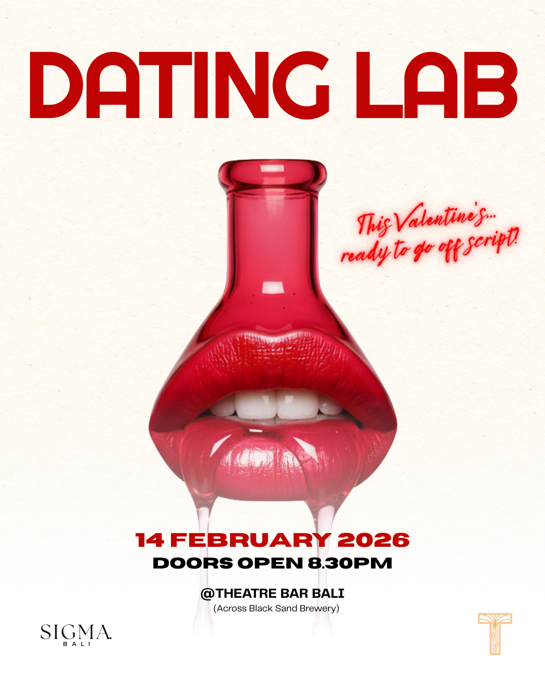 Single? Taken? In a “don’t ask” situation? Perfect. Forget roses and predictable plans, DATING LAB is where Valentine’s gets messy in the best way, all inside Theatre Bar.