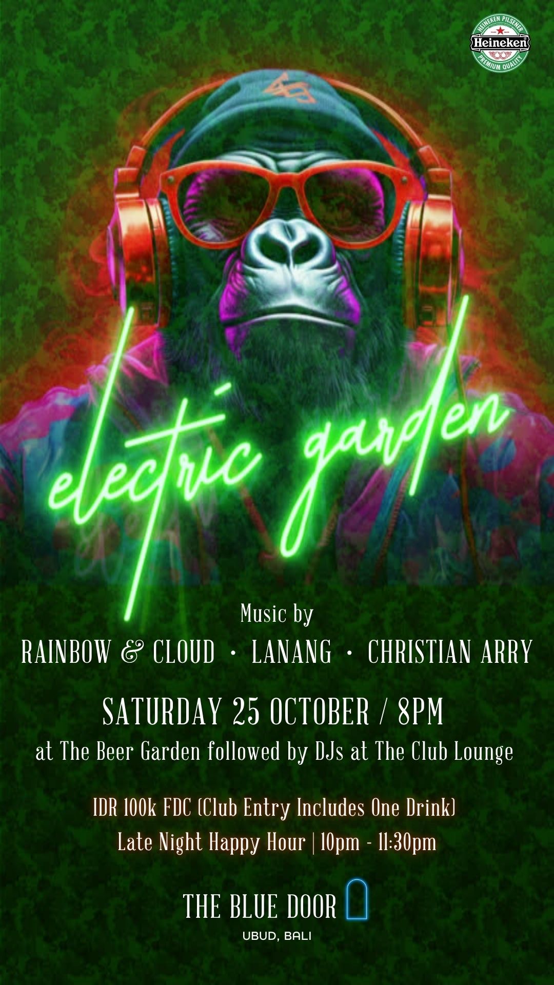 Electric Garden this Saturday 25 October - join us for live music from the enigmatic rockstars Rainbow & Cloud followed by electrifying beats by DJ Lanang and Christian Arry