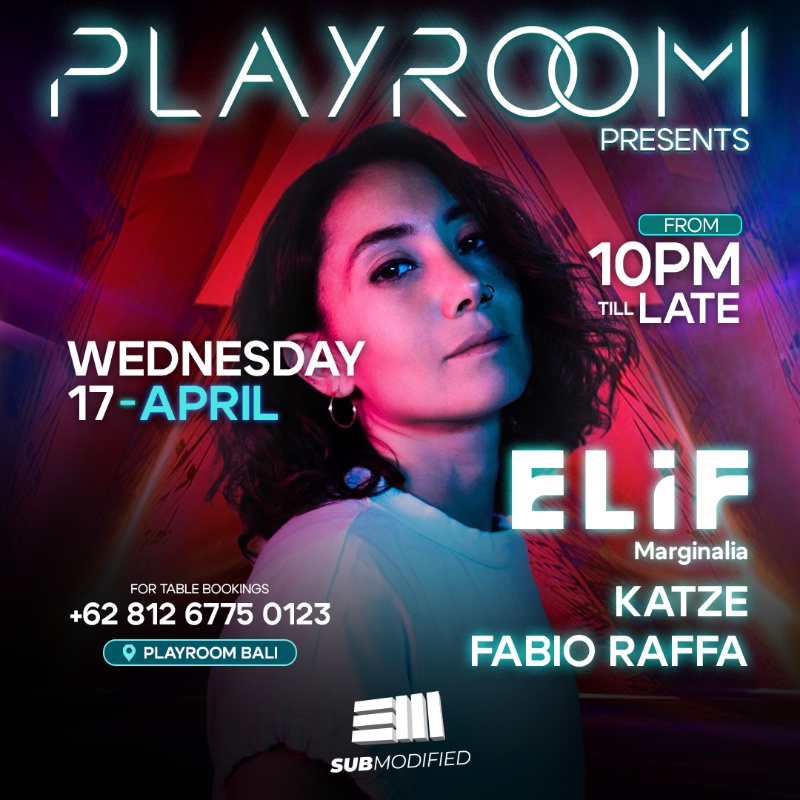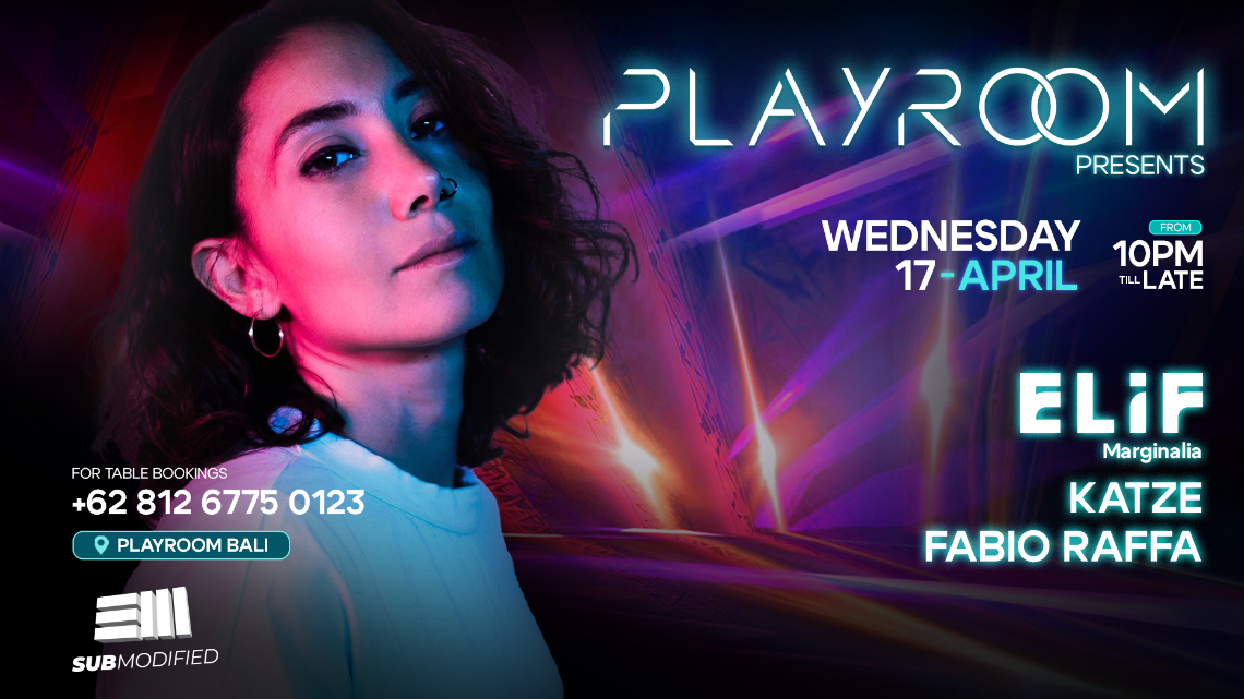 Elif makes her Bali debut at Playroom Nightclub on Wedneday 17th April.