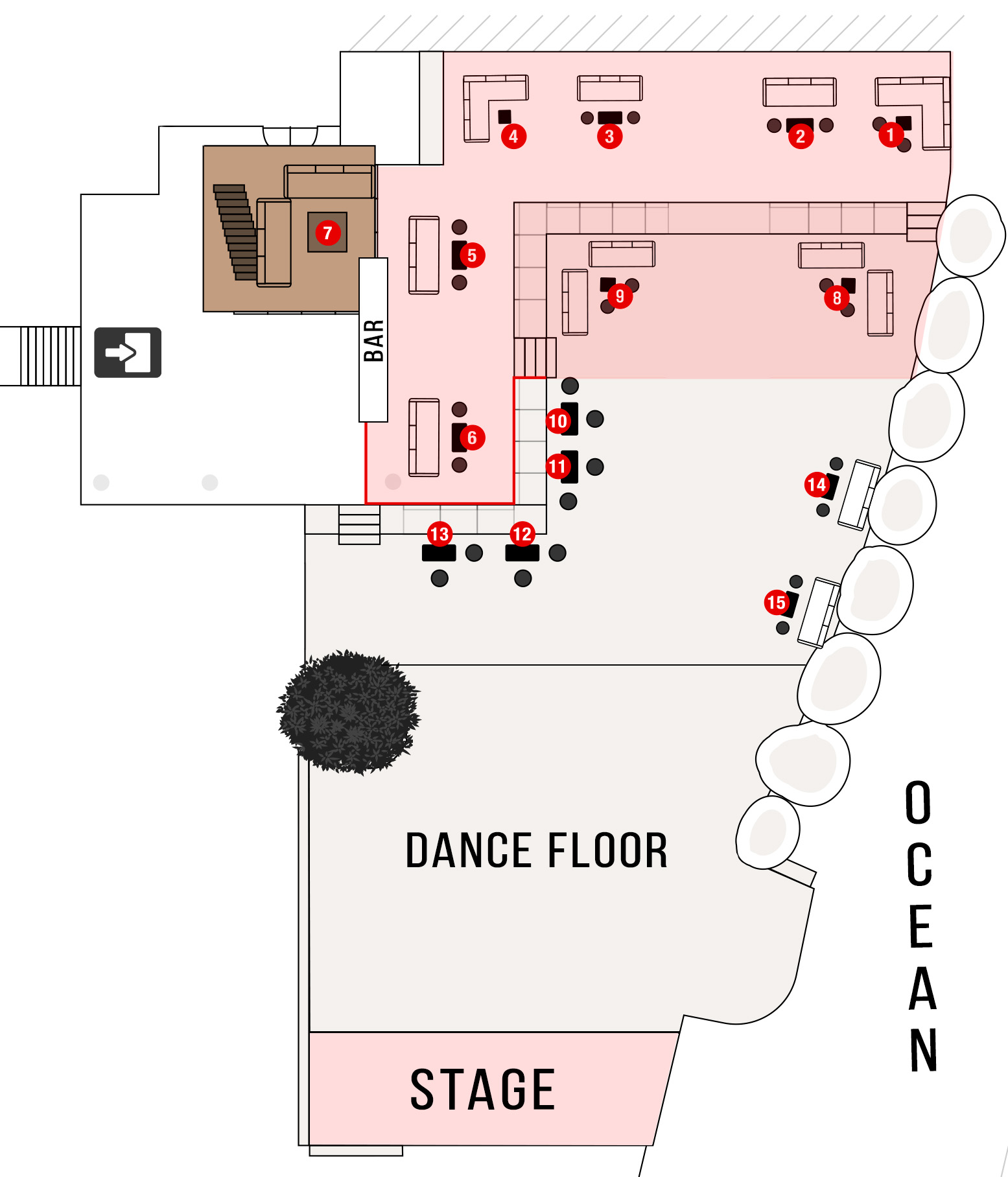 -Tables (VIP & Regular)- Улучшенная зона с персональными столиками. В цену билета включено обслуживание официантами, сет закусок, а также бутылка алкоголя на выбор (в зависимости от категории стола).