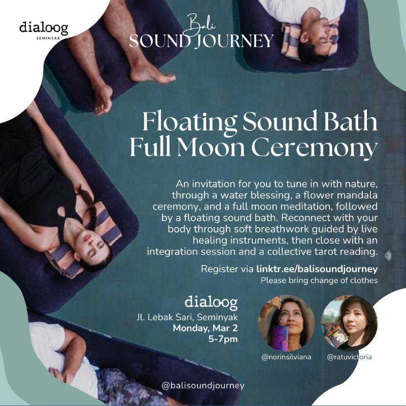 She is an International Brand Ambassador of Meinl Sonic Energy, the founder of Breathe and Sound Sanctuary, and a pioneer of floating sound bath experiences in Bali, leading professional sound healing practitioner trainings and facilitating extensive hours of movement, breathwork, and sound healing across Europe and Indonesia.