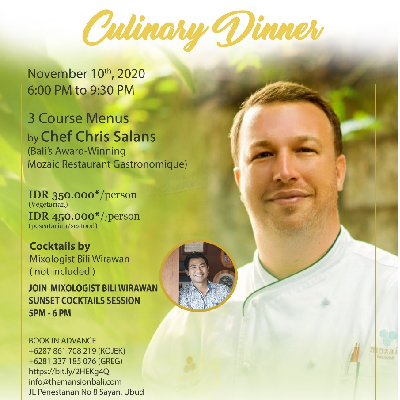 New Normal Expo at The Mansion Bali present Gala Dinner to our customer and prepared by Chef Chris Salans who is head chef a Mozaic Restaurant.