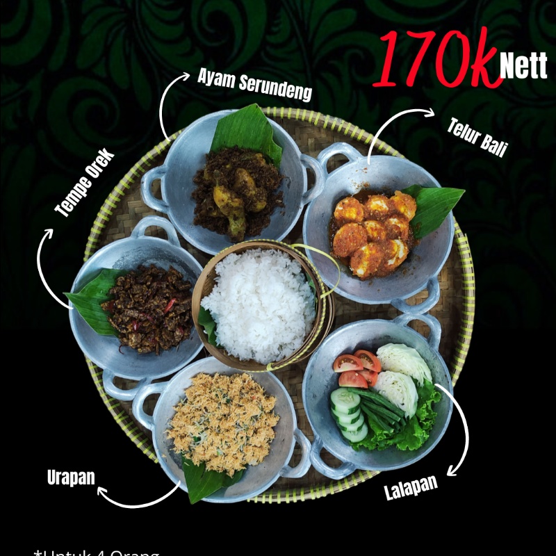 Rasakan kelezatan cita rasa Nusantara,dapatkan pengalaman berharga dan istimewa hanya dengan Rp 170,000, net (untuk 4 orang)