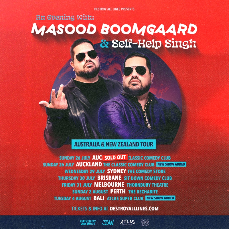 MASOOD BOOMGAARD – international comedian and mastermind behind the online sensation that is SELF-HELP SINGH – will be bringing his unique brand of observational comedy and stand up to audiences in Australia and New Zealand this July and August!