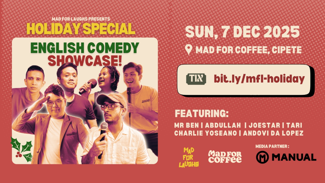 Let’s wrap up the year with warmth, joy, and a whole lot of laughter. Spend a festive afternoon with some of Jakarta’s funniest English-speaking comedians — the perfect way to laugh your way into the holidays.