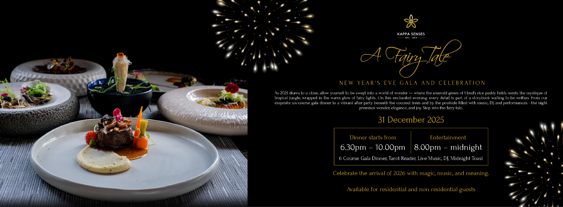 As 2025 draws to a close, allow yourself to be swept into a world of wonder — where the emerald green of Ubud’s rice paddy fields meets the mystique of tropical jungle, wrapped in the warm glow of fairy lights. On this enchanted evening, every detail is part of a storybook waiting to be written. From our exquisite six-course gala dinner to a vibrant after-party beneath the coconut trees and by the poolside filled with music, DJ, and performances - the night promises wonder, elegance, and joy. Step into the fairy tale.