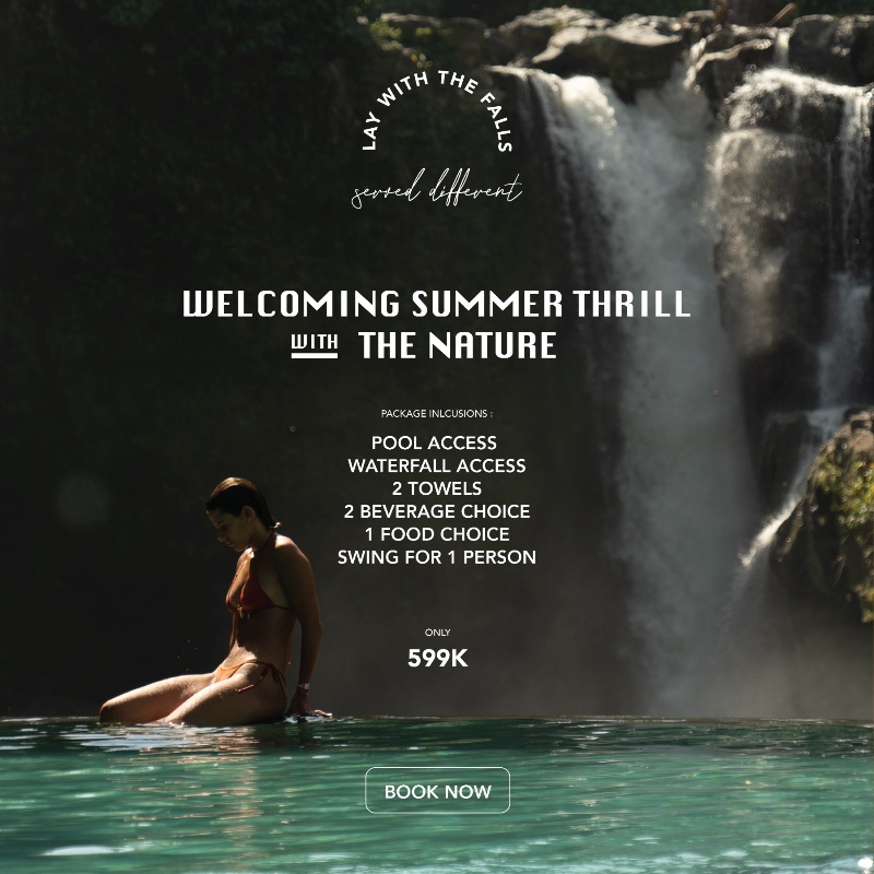 Nature sets the scene and good vibes take over. Mornings start with birds singing and the sound of the Tegenungan Waterfall, while your day flows with delicious food, fresh cocktails, and music that fits every mood. Float into the morning with breakfast by the pool, pop a bottle of champagne under the sun, or dance as the sky turns gold. Whether you're here to relax or party, Omma is where it all comes together.