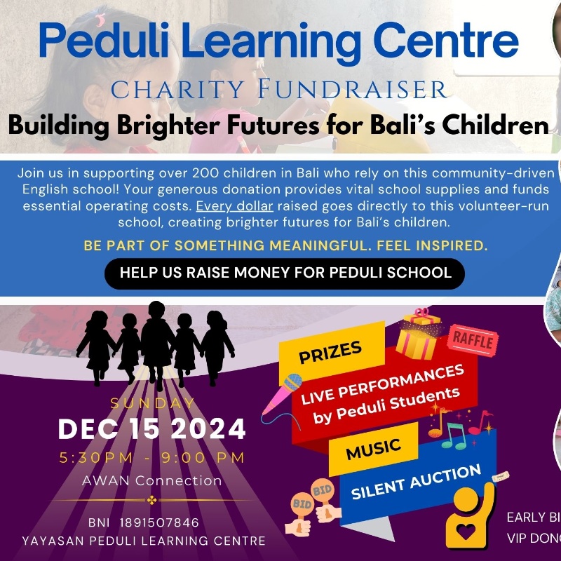 Join us in supporting over 200 local children who rely on a non-profit charitable English school in rural Bali! Your generous donation provides vital school supplies and funds essential operating costs. The school is run by volunteers, offers essential education that builds confidence, creates pathways to new opportunities, and inspires hope for a brighter future.