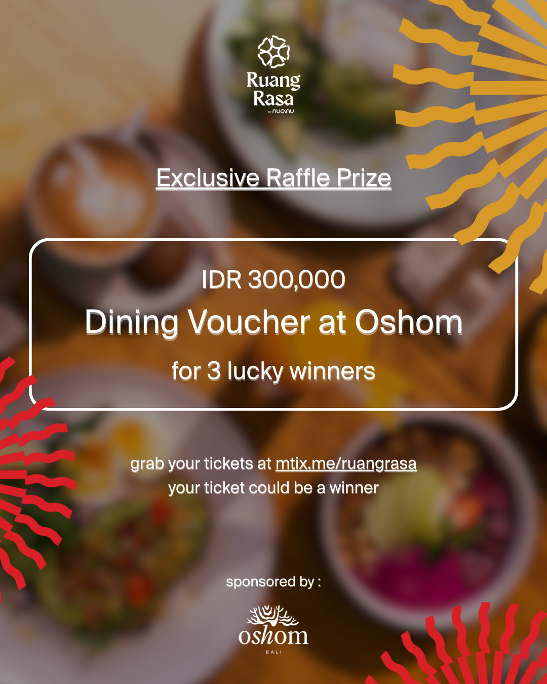 As a treat for this wonderful holiday season, Ruang Rasa is giving away exciting prizes to our lucky winners! No extra purchase needed, by getting our tickets you are automatically entered to win these amazing rewards.