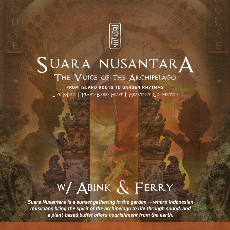 Suara Nusantara is a sunset gathering in the garden — where Indonesian musicians bring the spirit of the archipelago to life through sound, and a plant-based buffet offers nourishment from the earth.