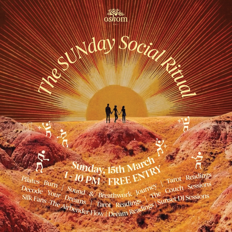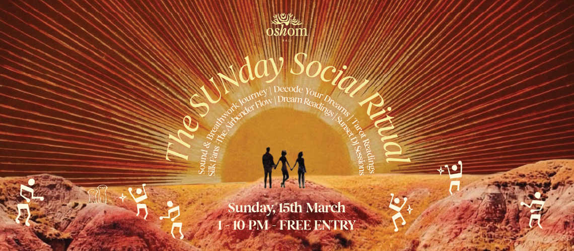 The SUNday Social Ritual is a curated Sunday experience blending movement, breathwork, intuitive exploration, and sunset music in a relaxed seaside setting at Oshom.