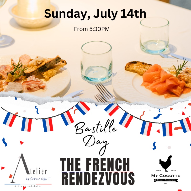 Mark your calendars and prepare to be whisked away into the charming refuge of bon vivants! We are thrilled to invite you to 'The French RDV July 14th', our spectacular celebration of France's Bastille Day, hosted at @mycocottebali! Dive into a night filled with gourmet cold cuts, Tasmanian Smoked Salmon, exquisite wines, and delightful surprises 🍷. & With limited spots available, ensure your presence in this epicurean experience! Tickets available Link in bio -RSVP to secure your slice of luxury 🥂. An enchanting night of flavors and surprises awaits!