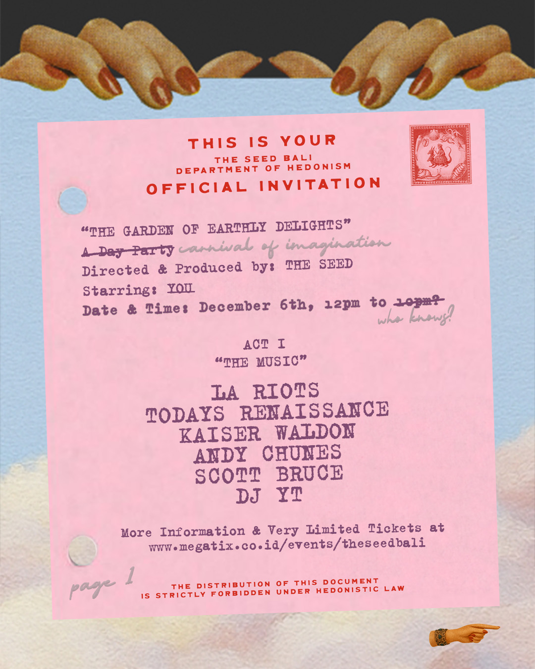 For one day only, The Seed — a private sanctuary on Bali’s east coast, opens its gates for a celebration of sound, movement, and sensory wonder. Explore a day-to-night journey featuring live music, immersive visuals, and performances woven through The Garden of Earthly Delights.
