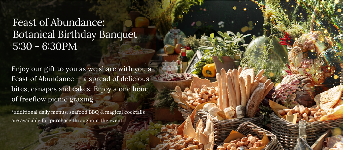 5.30 – 6.30 PM | Feast of Abundance: 1 hour free flow picnic grazing table