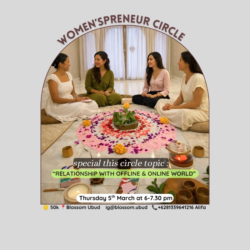 🦋🏡Recently, Alifa opened Blossom, a community and art space located in the heart of Penestanan, Ubud. Blossom was created as a art space, community & safe space for connection — where women can gather, learn, create, and simply be themselves. The space hosts workshops, classes, and intimate events that support creativity, healing, and community.
