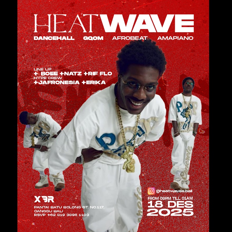 HEATWAVE is a high-energy night bringing together the hottest sounds of Dancehall, Gqom, Afrobeat, and Amapiano in the heart of Canggu.