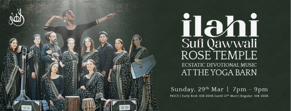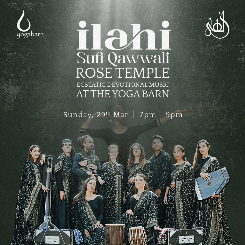 🌹 The Yoga Barn will blossom with the music of the Sufi mystics on Sunday, March 29th, as Ilahi Sufi Qawwali ensemble brings their enchanting evening of candle-lit, rose-infused Qawwali poetry and ecstatically devotional music to our Ubud community.