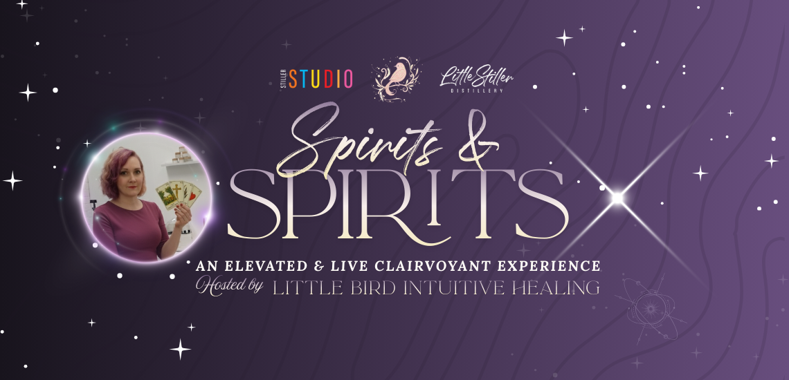 Join us upstairs at Stiller Studio on Sunday April 19 as Little Bird Intuitive Healing delivers a live, interactive mediumship experience... all while you sip on premium Little Stiller cocktails and enjoy delicious bites.